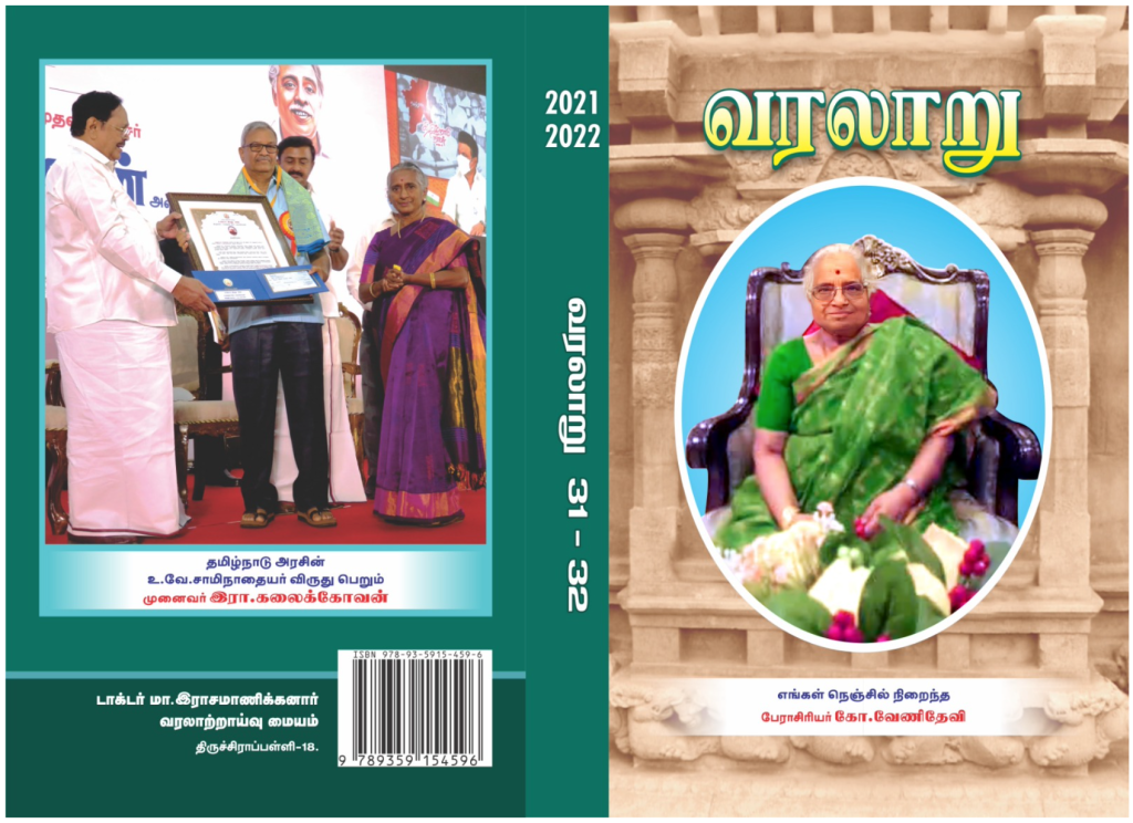 It is a great honour for me that my Tamil article was recently published in the widely acclaimed ‘வரலாறு / varalaaru (issue 31-32 for the years 2021/2022) – a Journal for historical researches, published annually by Dr M. Rajamanikkanar Historical Research Centre, Thiruchirappalli since 1993. வரலாறு / varalaaru- is one amongst the recognised journals under UGC’s Consortium for Academic and Research Ethics (CARE) Reference List of Quality Journals.
